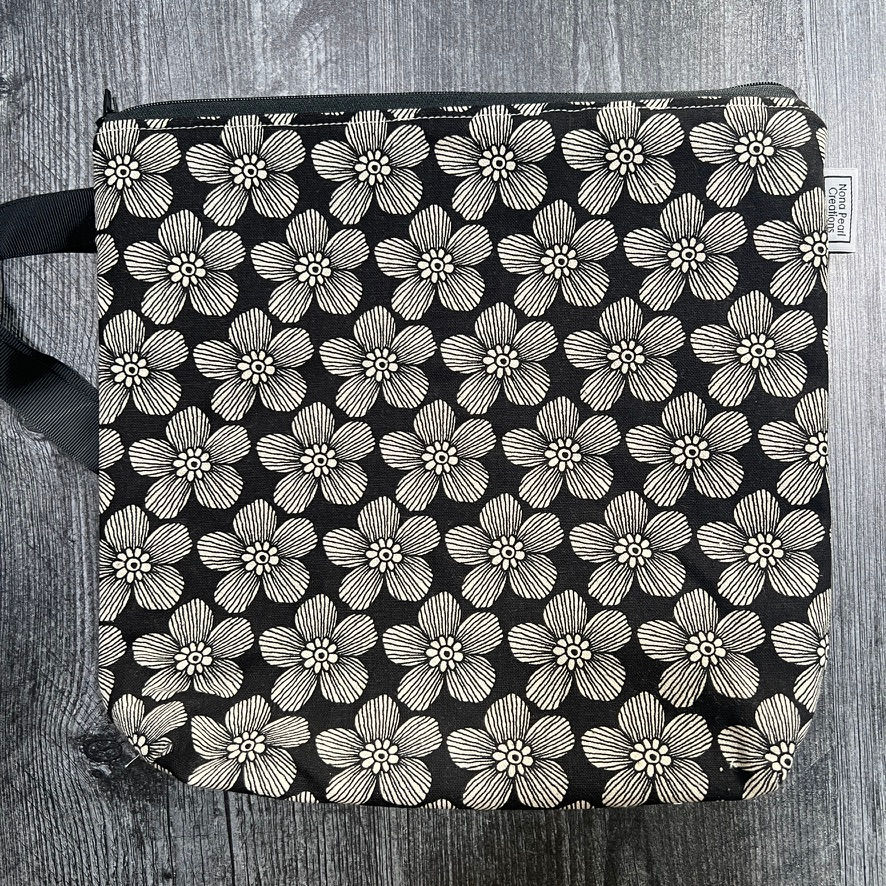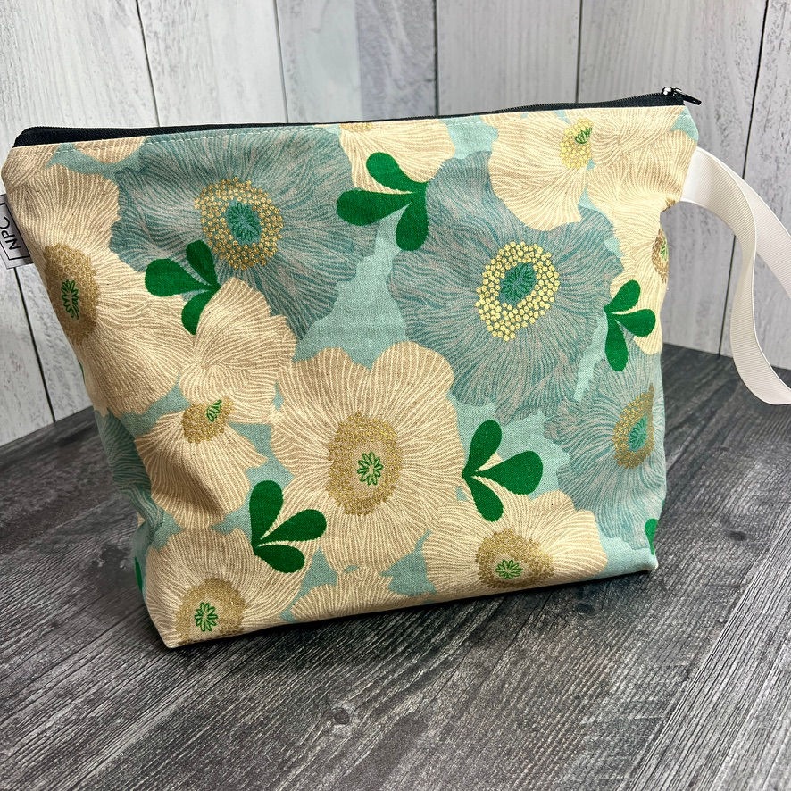 I hate waste! When cutting fabric for my bags, I work hard to use every scrap of fabric possible. My zipper bags were born out of this frugality. Thus, they come in a variety of fabrics, sizes and price points. They all have linings and flat bottoms. Most have ribbon or nylon strap handles. Read each listing carefully as these bags are all one of a kind.